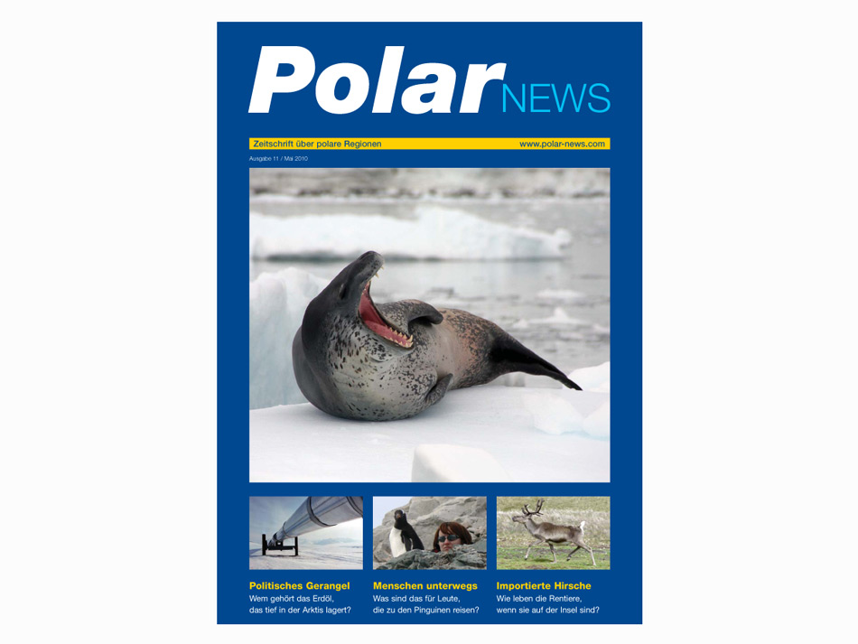 Mit umso mehr Elan haben wir uns deshalb an die neue Nummer gemacht und wieder spannende Themen eingehend beleuchtet: Peter Balwin berichtet das Neuste über die Forschung an Robben, Christian Hug hat sich vertieft mit den Machtkämpfen um das Erdöl in der Arktis auseinandergesetzt und betrachtet ein paar Seiten weiter hinten eine Reise zur Antartkischen Halbinsel aus einem ungewohnten Blickwinkel. Uns gefällt das! Und wir hoffen, euch auch.
